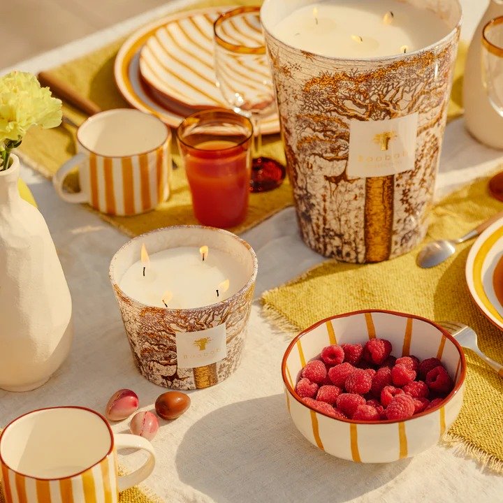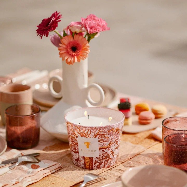 Pour parfaire l’atmosphère, les bougies parfumées de Baobab Collection apportent une touche sophistiquée à la table de Pâques. Leurs verres décoratifs et leurs fragrances délicates créent une ambiance chaleureuse et élégante, idéale pour accompagner un déjeuner de fête.