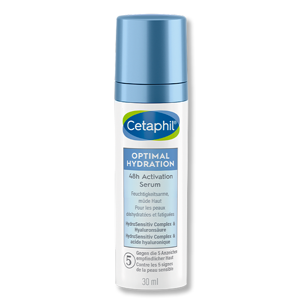 L’OPTIMAL HYDRATION 48H ACTIVATION SERUM de Cetaphil est l’atout hydratation idéal. Ce sérum à base d’HydroSensitiv ComplexTM est un véritable allié pour les peaux sensibles, enrichie en acide hyaluronique, huile de déshydratées et fatiguées. Sa formule tournesol et provitamine B5 hydrate intensément la peau. Il pénètre rapidement avec un effet de fraîcheur. Ce sérum concentre tous les bienfaits nécessaires pour prendre soin des peaux sensibles, déshydratées et fatiguées, offrant une peau éclatante et lisse.
