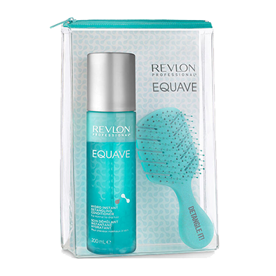 Revlon Equave Trousse Soin Démêlant Hydratant + Brosse : Ce kit comprend un soin sans rinçage instantané qui hydrate, démêle et contrôle les frisottis grâce à sa formule à la kératine, ainsi qu’une mini brosse démêlante idéale pour tous types de cheveux normaux à secs.