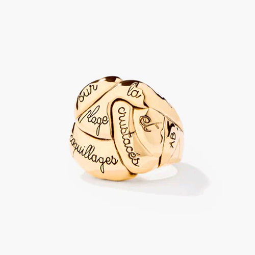 🐚 Aurélie Bidermann – Esprit Riviera La bague et la manchette Mistrella revisitent le bijou de vacances version couture. Entre inspiration antique et look bord de mer, ces pièces sont parfaites pour accessoiriser une robe en lin ou une tunique fluide.
