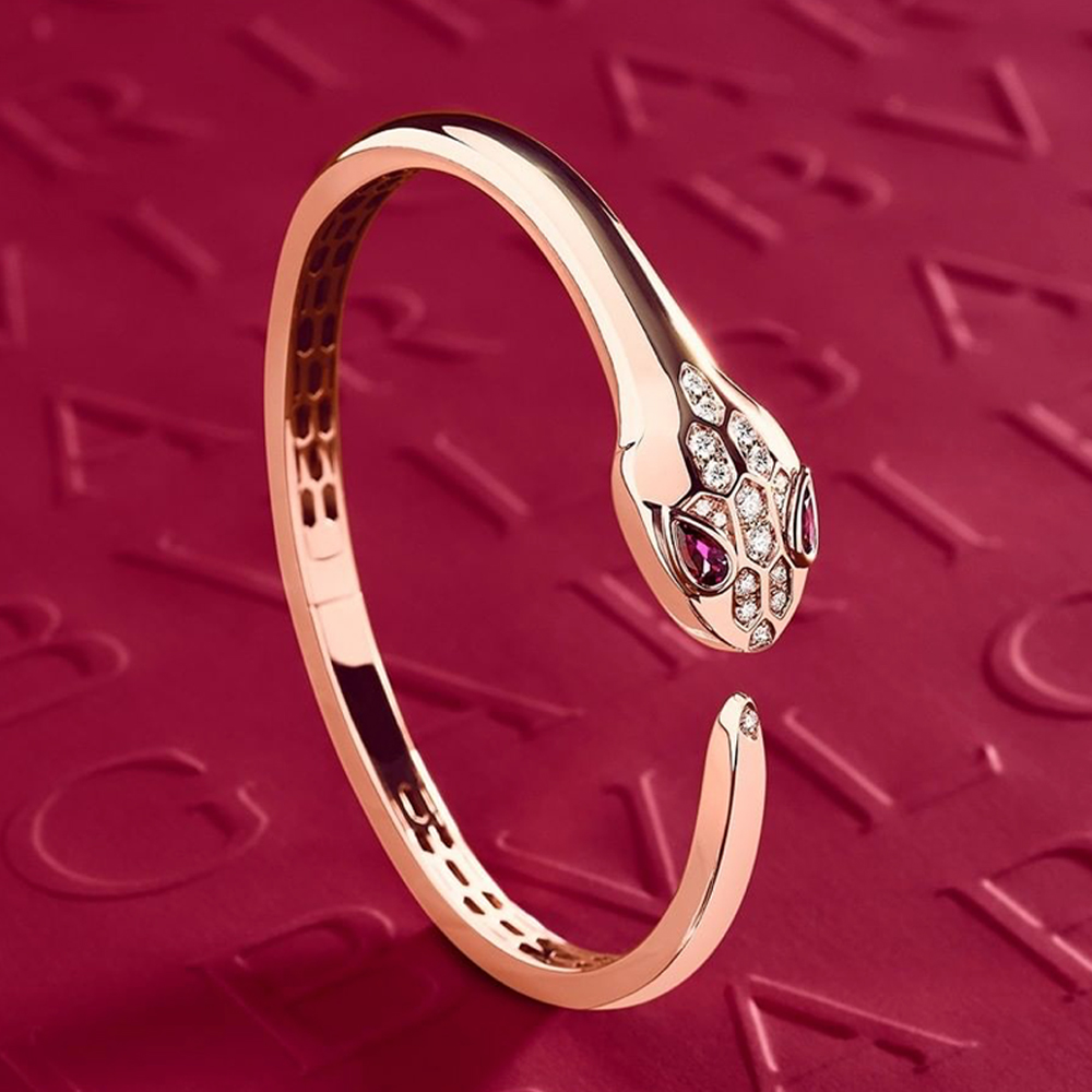 The snake is the animal dreamed of for jewelry, symbol of temptation, charisma and sensuality, we find it in the collections of many jewelers. The Italian brand Bulgari has made it its favorite animal. The reptilian creations are undoubtedly hypnotic, especially with the pink gold snake bracelet with rubellite eyes embellished with semi-pavé diamonds.