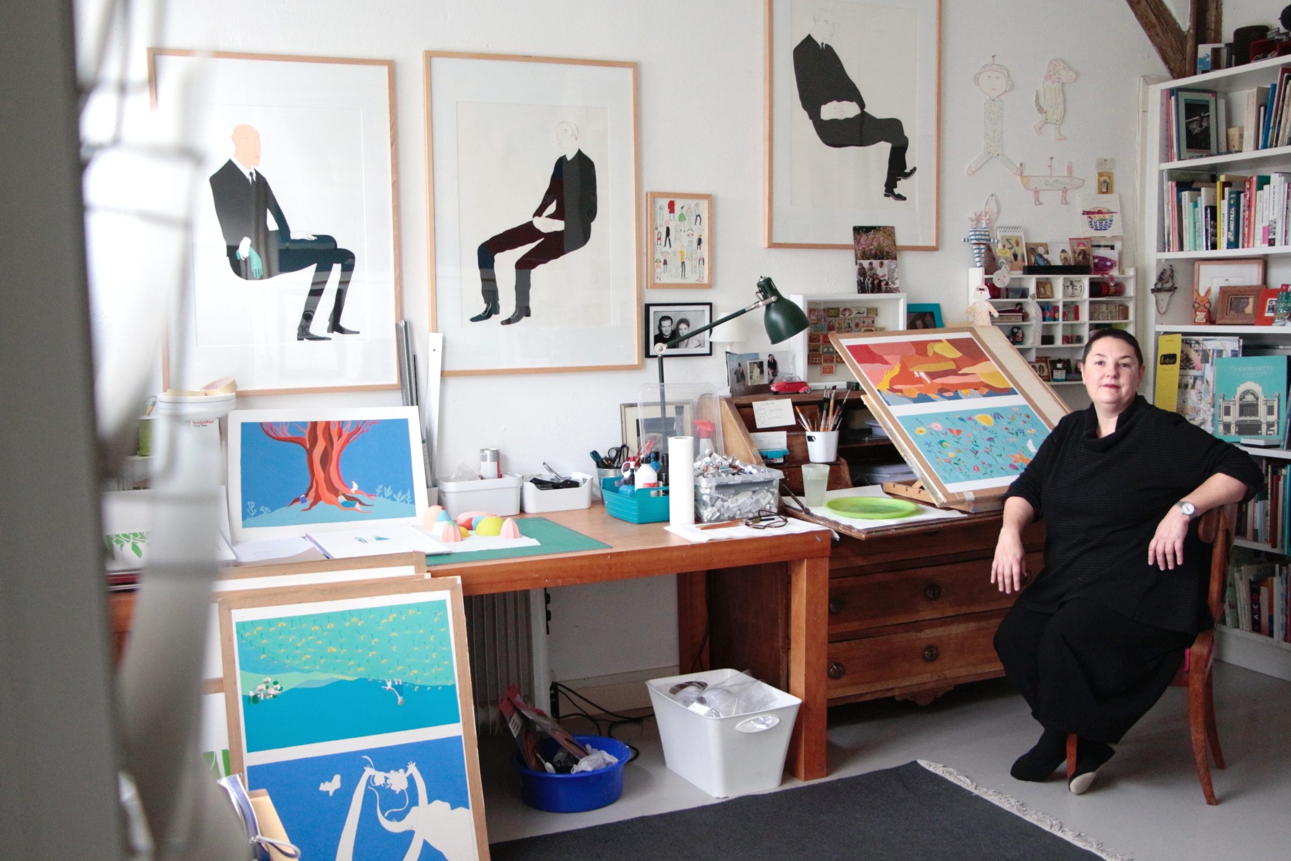 Geneva-based illustrator, Albertine has always refined her characteristic line. First through her drawings for the Geneva School of Decorative Arts, then very quickly for L’Hebdo, Femina, Bilan and other press pillars and on the pages of children’s books, notably in artistic duo with her husband Germano Zullo, author and writer. In fact, last year, this work was marked by the Hans Christian Andersen Prize, considered a Nobel Prize for children’s literature. But who is hiding behind these so expressive faces? Meeting with the artist in his workshop in Dardagny.