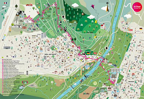 This 5-kilometre art trail links the Fondation Beyeler with the Vitra Design Museum (in Germany) through the vineyards and hills of Riehen. It features some twenty monumental works by German sculptor Tobias Rehberger, integrated into the landscape. A pedestrian or bicycle trail where contemporary art and nature meet in harmony. The ten-year tour can be visited until October 31, 2025.