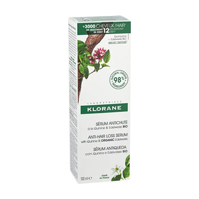 Klorane’s Quinine & Organic Edelweiss Serum to slow down hair loss. A treatment rich in vitamin B and manganese nutrients that strengthens the hair and regenerates the hair fiber. The serum, sprayed 2 to 3 times a week for 3 months on the lengths and scalp, gives the hair a makeover and slows down hair loss. The hair reveals all its beauty in a fragrance with invigorating notes.