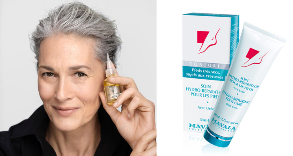 Let’s not forget to pamper our feet, which are too often stressed and sensitized during the menopause phase. It is not uncommon to find yourself with small cracks in your feet, the skin cracks and becomes dry in places, especially on the heels. We like Mavala’s foot care range, with a special mention for the Hydro-Repair Care for very dry, cracked feet, containing a high concentration of urea with super-moisturizing properties and a very pleasant minty fragrance.