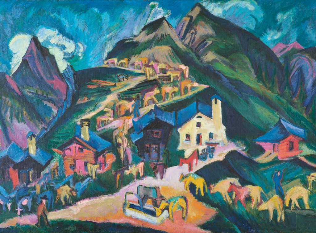 Swiss mountains play a central role. From Caspar Wolf’s Enlightenment-era topographical studies to Hodler and Kirchner’s bold compositions, the Alps become both refuge and spectacle.