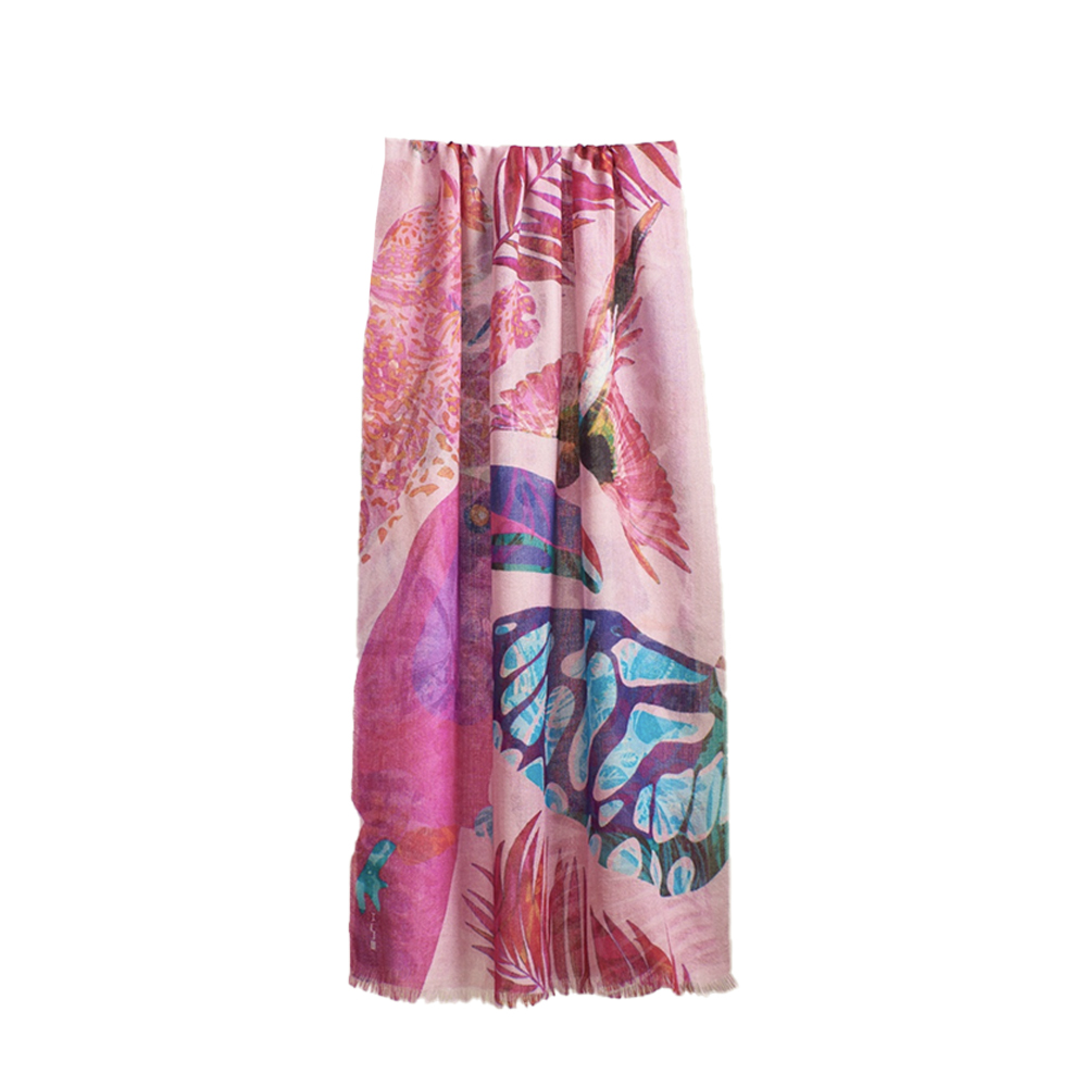 Essential accessory for the summer evenings sometimes a little cool, the scarf or the pink shawl make their big return.