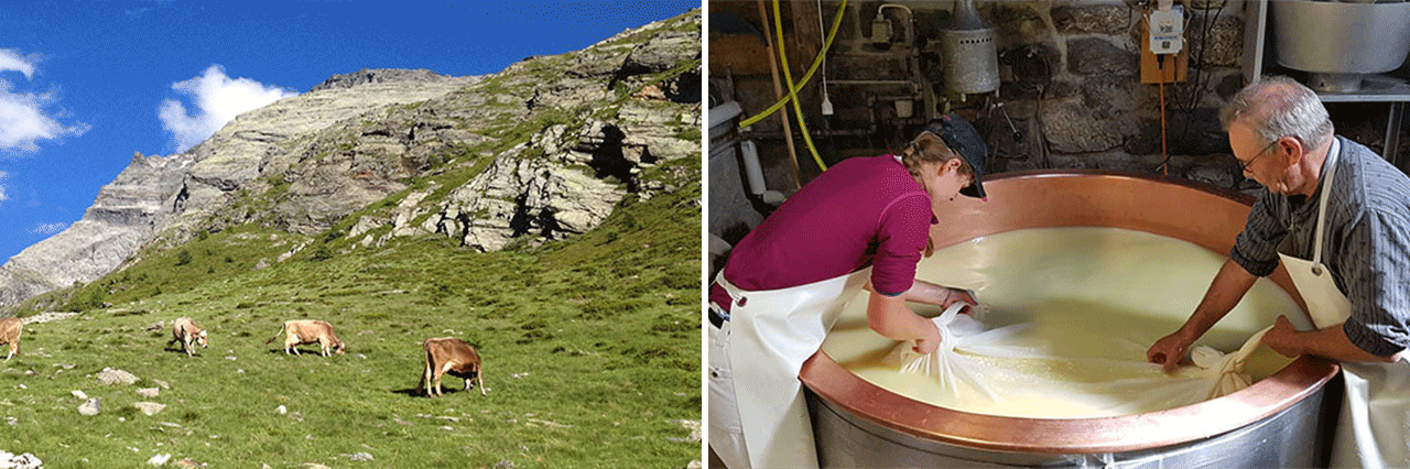 If the eternal debate between raclette or fondue has become part of the customs before the meal, it is the question of the choice of the cheese which made the caquelons boil in the years 2000. Well, not really of the cheese, but of its appellation, explanations! To understand what is at stake, we need to look at the ingredients of a raclette (the cheese, that is!): the milk, the lactic ferments and the rennet. According to the traditional Swiss method, the milk is heated, then mixed with lactic ferments and then rennet to make it curdle. Once the paste is ready, it is separated from the whey and finally put into the conservation molds. But which milk to use? If in the snowy mountains of the Valais, only raw milk is used, in other regions of Switzerland and France, pasteurized milk is used. The advantage of the latter is a regularity and constancy of taste, whereas the gustatory subtleties of raw milk cheese are strongly linked to the feeding of the cows in the pastures in summer or the hay in winter. The absence of sterilization requires a higher quality of milk and a better monitoring of the animals to avoid contamination with bad bacteria. In order to promote the traditions of the farmers attached to their land and this artisanal cheese-making know-how, some twenty Valais dairies have joined together under the Valdor label, which notably manages the marketing of their cheeses after 3-4 months of maturing in Sierre.