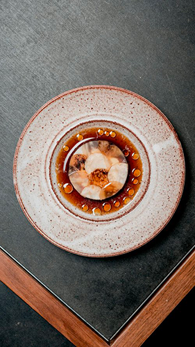 Trained under the legendary Andreas Caminada, the three-Michelin-starred chef of Schloss Schauenstein, Silvio Germann honed his skills as executive chef at IGNIV in Bad Ragaz, where he earned his first Michelin star. At Mammertsberg, he now expresses a personal, liberated culinary language — pure flavors and contemporary elegance. Menu descriptions are minimalist, but each dish reveals meticulous craftsmanship. One example: his signature “beef tartare / celeriac / essence”, shared here exclusively with NOWVillage. A delicate Swiss beef tartare paired with celeriac in various textures and enhanced by an intense plant-based essence, for a tasting experience that’s both subtle and balanced.