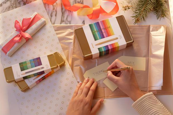 Caran d’Ache delivers a new colorful Limited Edition for the holidays with a very nice Ecridor Sunlight Colour Treasure set containing a gold metal ballpoint pen & its Leather case in its glittering box adorned with a multicolored band. To make this gift even more exceptional, have it engraved!