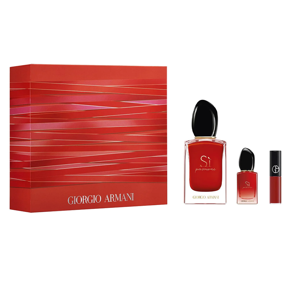 For her, Sì Passione, the quintessence of Giorgio Armani style, between sensuality and emotion. “Sì is a tribute to modern femininity, an irresistible blend of grace, strength, and independent spirit. The set consists of Sì Eau de Parfum 50 ml, Lip Power Miniature Lipstick, shade no. 104 and Body Milk 75 ml.
