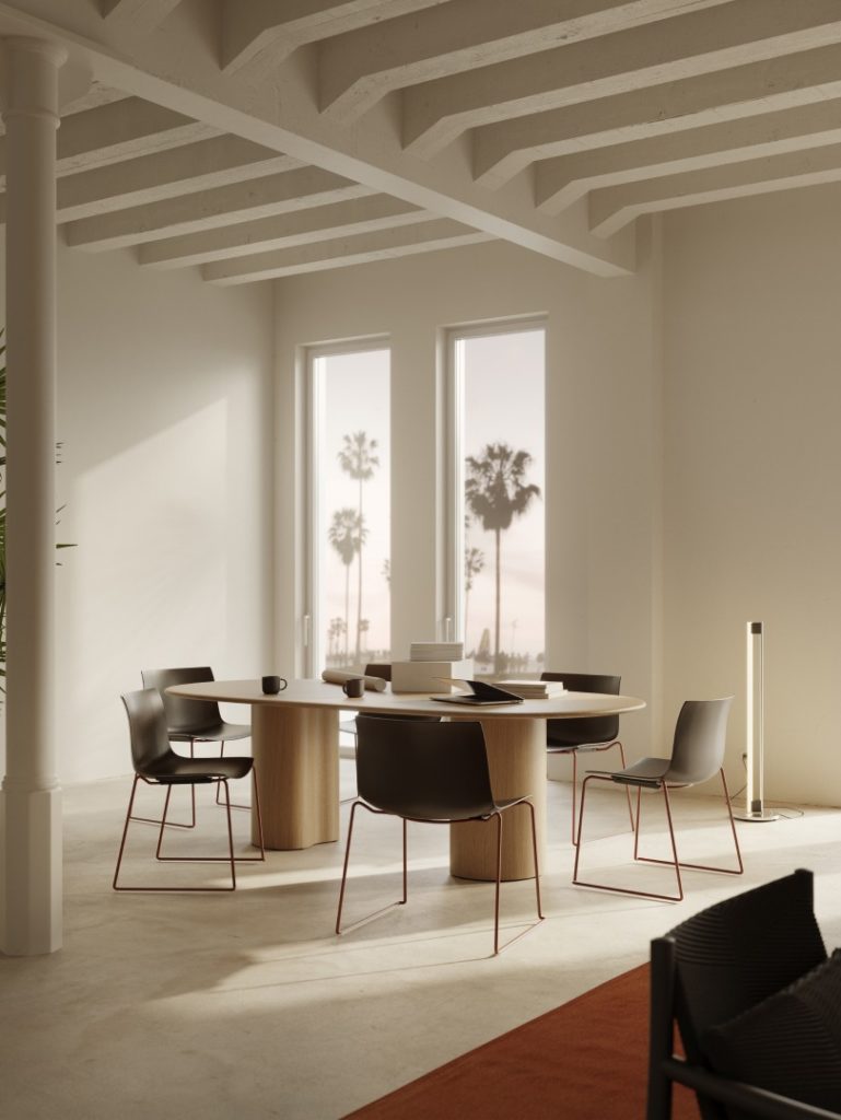 Imagined in 2024 by the Altherr Désile Park studio, the Ghia desk reflects the essence of Arper design: simplicity, fluidity and versatility. Its rounded lines and generous top create a soft, contemporary atmosphere. Elegant and functional, it adapts equally well to professional spaces and modern interiors, with a timeless aesthetic.