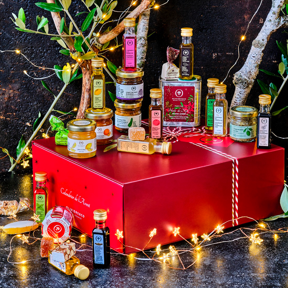 The Oliviers & Co Advent calendar opens the festive season with a pop-up Christmas table thatâs as gourmet as it is elegant. Hidden inside its drawers are 24 Mediterranean delights: fragrant olive oils, fruity vinegars, flavorful tapenades, jams and sweet treats.