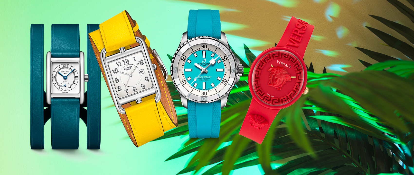 Summer is synonymous with bright colours and accessories that reflect the season’s joie de vivre. Complete your summer look by adorning your wrist with sparkling, colourful watches.