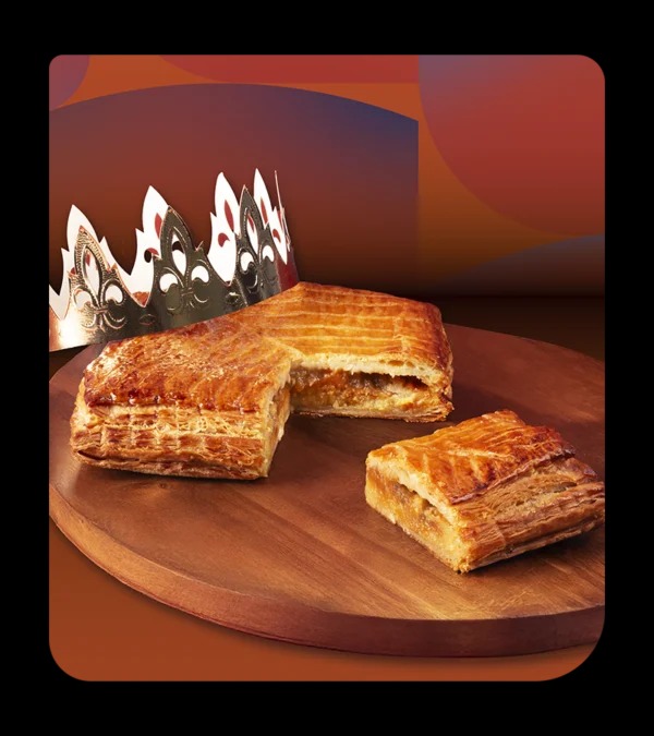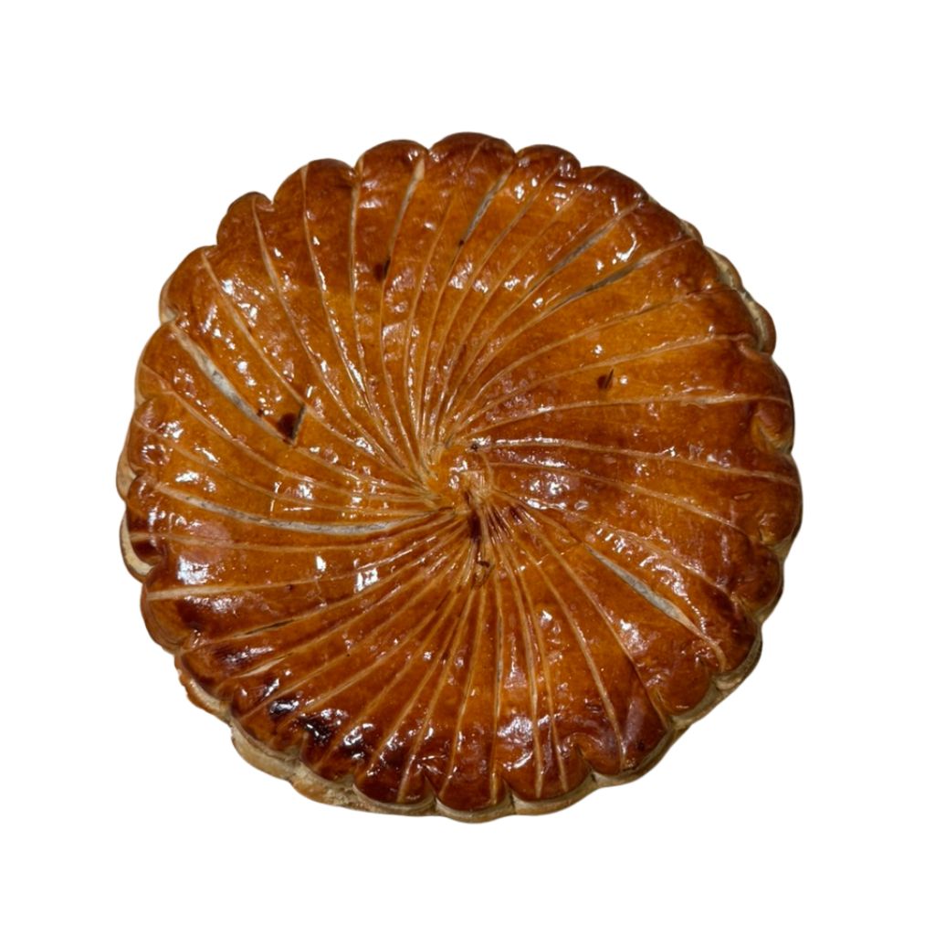 La version classique à la frangipane reste indétrônable : pâte feuilletée dorée, cœur d’amande fondant et fève porte-bonheur. Un équilibre parfait entre croustillant et moelleux, qui fait le succès de la galette depuis des générations.