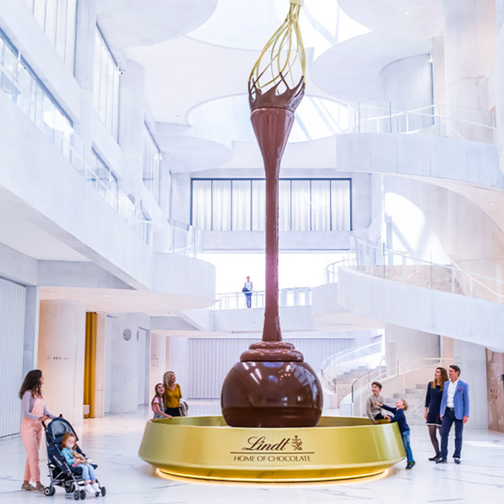 Ouvert en 2020, le Lindt Home of Chocolate a été conçu par la Fondation Lindt & Sprüngli pour offrir un lieu à la fois pédagogique, interactif et féerique. Son architecture contemporaine abrite une série de galeries immersives, retraçant les origines du cacao, son arrivée en Europe, l’essor du chocolat en Suisse, et les secrets de fabrication propres à Lindt.