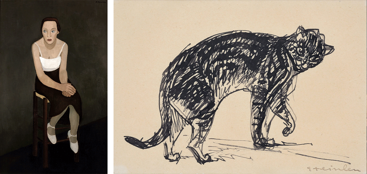 Nathalie Kraemer (1891-1943), Femme assise sur un tabouret | Théophile-Alexandre Steinlen, Apothéose des chats, 1905 | Théophile-Alexandre Steinlen, La chat fâché, sans date