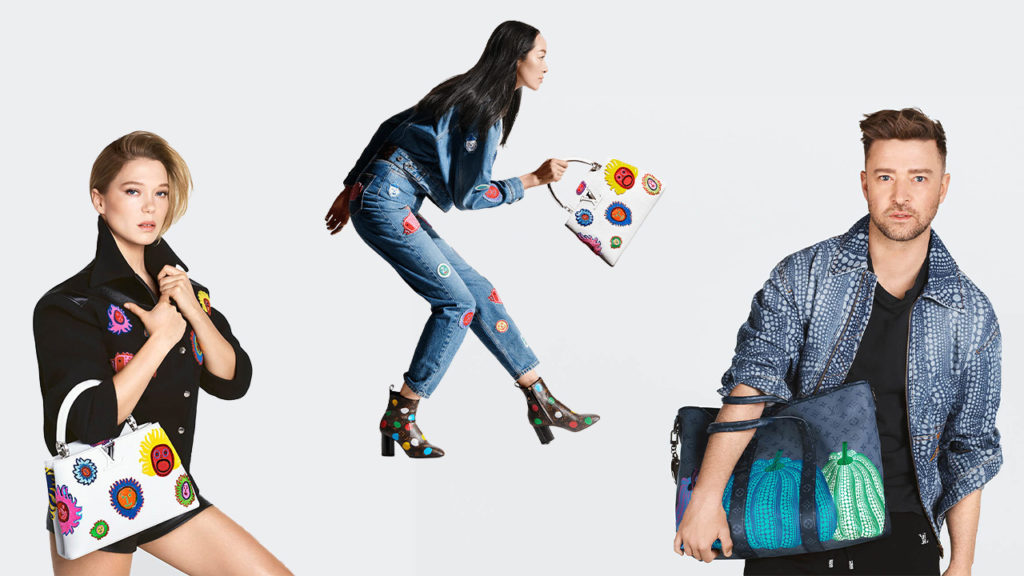 La collaboration entre Louis Vuitton et Yayoi Kusama était surement la plus attendue, mais pourquoi un tel engouement ? Tout d’abord, parce que les deux grands noms avaient déjà collaboré en 2012, propageant une véritable déferlante de pois et teintes vives dans le monde de la mode. L’autre raison est la qualité et l’originalité des artistes que la Maison choisit pour ses partenariats. De Stephen Sprouse à Richard Prince, en passant par Takashi Murakami ou Jeff Koons, les styles sont complètement antinomiques ! Alors que la campagne a été lancée en début d’année, le monde s’est depuis couvert de polka dots multicolores ! Ils sont partout : sur les sacs de Bella Hadid, égérie choisie, le packaging des fragrances iconiques, les pièces les plus emblématiques de la Maison et même différents bâtiments autour du monde. En parlant justement des bâtisses, la fantasmagorie a atteint son apogée lorsqu’une sculpture géantissime de Yayoi Kusama en train de déposer ses Painted Dots sur la devanture de la boutique des Champs-Élysées a été dévoilée au public ! Les réseaux sociaux se sont emballés, propulsant la collaboration sur le devant de la scène. En plus de ses nombreux types de pois, l’artiste a également revisité près de 400 pièces avec ses citrouilles iconiques, les « faces » surréalistes et les Fleurs Figuratives, le tout dans son style si reconnaissable. Impressionnant, non ?