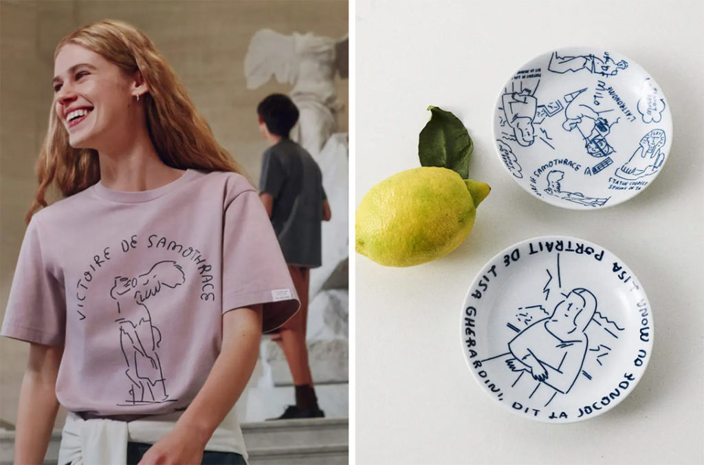 Quand le spécialiste japonais du LifeWear s’associe au géant iconique de l’art le plus visité au monde, cela donne un partenariat unique sur quatre ans. Lancé en 2021, il a notamment permis de faire sortir les œuvres du musée, à défaut de pouvoir les visiter durant la pandémie ! Si ce rendez-vous entre la culture et la fast fashion se matérialise dans la ligne UT de la marque, la collaboration entre les deux emblèmes va également au-delà du vêtement (on en reparle dans un instant) avec une composante résolument culturelle. Et oui, UNIQLO a décidé d’également parrainer la Nocturne du samedi et devenir partenaire des Mini découvertes, visites guides courtes destinées aux familles pour compléter cette collaboration. Mais revenons sur le textile. La première collection s’est articulé autour des numéros d’inventaires des œuvres, idée conceptualisée par le designer Peter Saville pour la ligne masculine. Pour le volet féminin, les célèbres tableaux et œuvres du Louvre ont été mis en avant. L’année dernière, ce partenariat s’est concrétisé par l’invitation de l’artiste japonais Yu Nagaba à revisiter les chefs-d’œuvre du musée dans son style épuré. Il a ainsi choisi ses modèles parmi les quelques 35 000 oeuvres exposées pour ensuite les (re)dessiner d’une façon minimaliste, créant ainsi les liens entre l’héritage culturel et les tendances actuelles. Petit plus, une tasse et sa soucoupe de type Hasami ont été rajoutées à la collection ! La collaboration UNIQLO x Louvre dure encore jusqu’en 2024, donc le rendez-vous pour la prochaine capsule est donné !