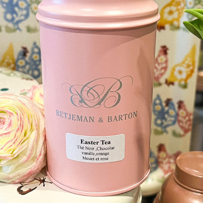 Betjeman & Barton partage toute la gourmandise de Pâques dans une tasse de thé avec l’Easter Tea, un mélange de thés de Chine et de Ceylan. Ce thé noir est aromatisé au chocolat, à la vanille et à l’essence d’orange, pour un vrai plaisir gourmand. Les bleuets et les pétales de roses complètent la délicatesse de ce thé avec élégance. Retrouvez-le dans la boutique Betjeman & Barton à Carouge ou sur www.barton.ch.