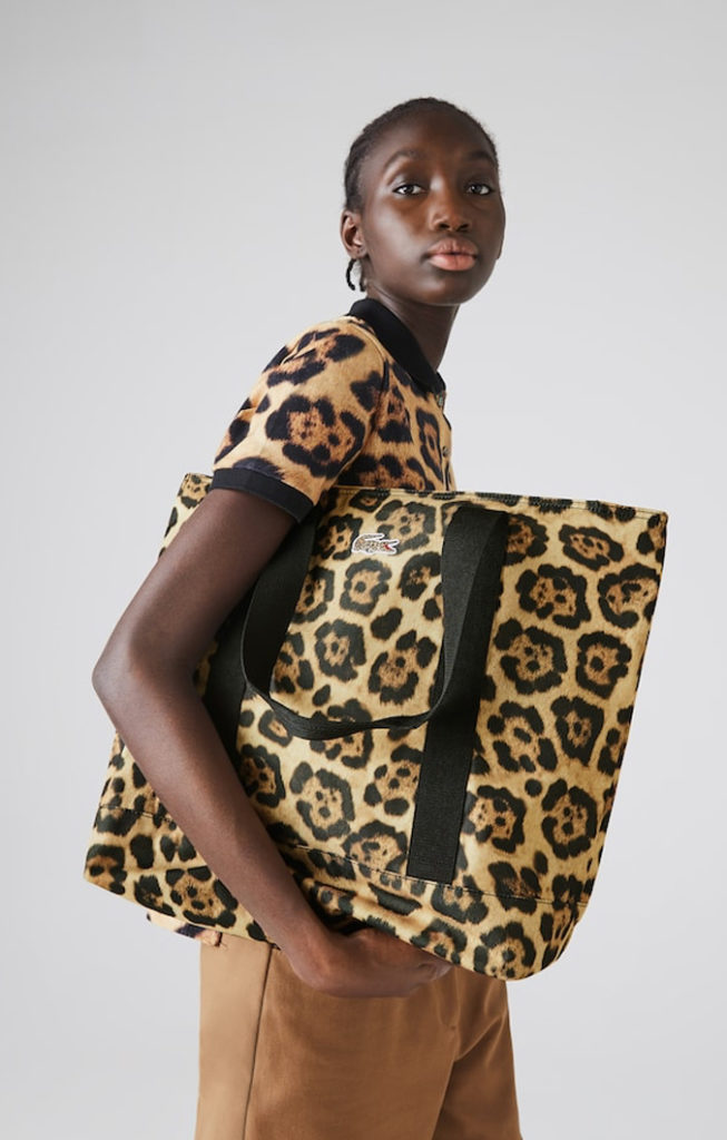 Nous accentuons notre look monochrome imprimé léopard avec le maxi sac Lacoste « Sac Cabas ». Le saviez-vous? Une des tendances 2021 se trouve à être les imprimés! Associée à la tendance maxi bag, à vous le look 0 faute. On opte pour des vêtements simples et sobres afin de laisser le maxi bag faire son show.