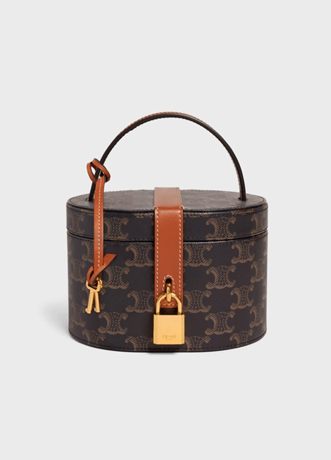 Embarquez pour un voyage élégant avec le Vanity Case Triomphe par la Maison Celine. Conçu pour les explorateurs chics, ce vanity associe toile Triomphe, veau et finitions or pour un chic intemporel. Avec son espace sécurisé pour vos trésors, son miroir amovible et sa poignée en cuir, il vous accompagne dans vos aventures avec style. Explorez le monde avec Celine.