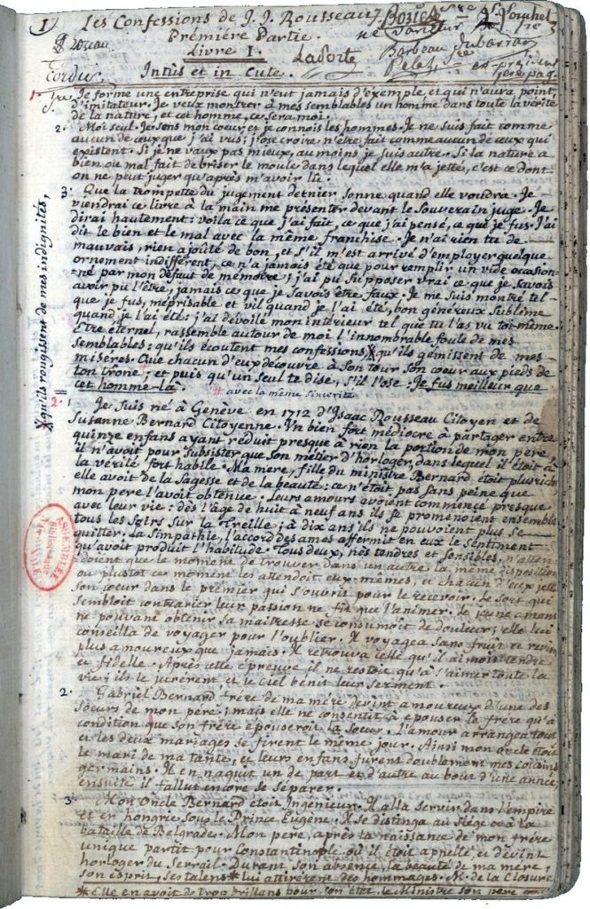 La première trace qu’il a choisie de laisser est celle des « Confessions », premier roman autobiographique où le narrateur adulte rencontre le héros principal à différents âges de sa vie. En partageant ouvertement et dans les moindres détails des souvenirs joyeux et des aspects plus controversés de son existence, Rousseau cherchait également à se justifier. Il souhaitait ainsi surmonter le sentiment d’incompréhension qui l’avait accompagné toute sa vie. Mais commençons par le début, dans la Genève d’autrefois.